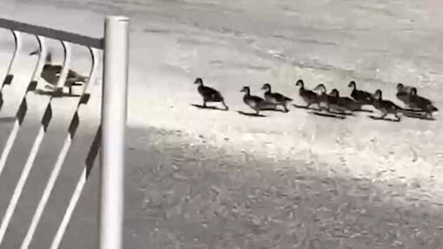 В Симферополе на видео попало, как утка с утятами нарушали ПДД