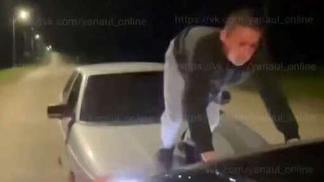 В Башкирии на видео попало, как мужчина прыгал по движущимся авто