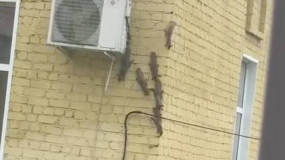 Белка провела детенышей по стене в российский роддом и попала на видео