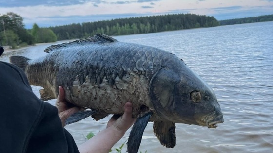 Гигантского карпа обнаружили на берегу реки в Выксе