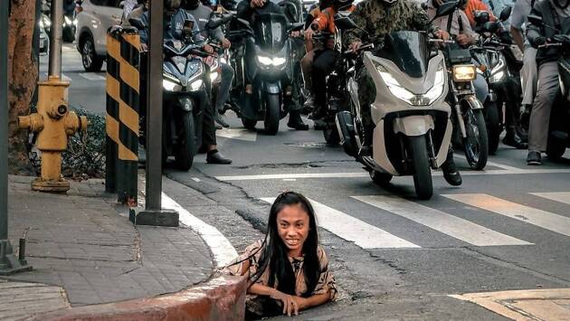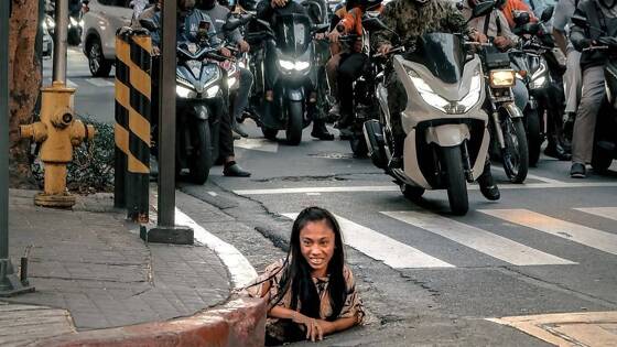 В столице Филиппин молодая женщина выбралась из ливневой канализации на оживленной улице и испугала окружающих. Об этом сообщает Straits Times.