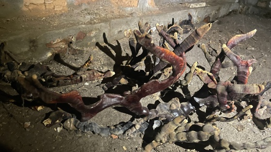 «В данном случае интересно ещё то, что гриб вырос не в дикой природе, а между грунтом и зданием, в нише под полом. Своим необычным видом он обязан, вероятно, особым условиям без доступа света», — пишет автор.