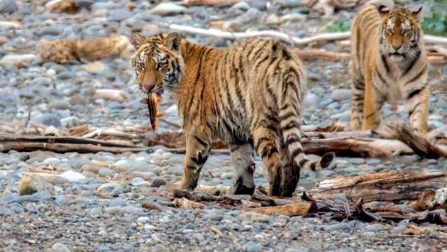 На побережье Сихотэ-Алинского заповедника были засняты редкие кадры, как трое амурских тигрят-сирот отправились на рыбалку. Животные, недавно оставшиеся без матери, научились охотится самостоятельно и порадовали ученых, передает заповедник.