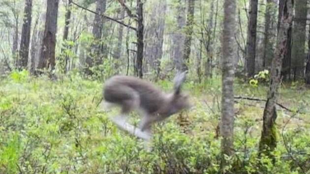 Фотоловушка в российском парке запечатлела редкий момент с «летящим» зайцем