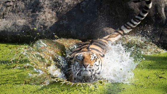Тигр увидел россиян, схватил ведро с их рыбой и убежал