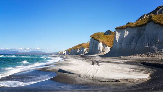 На берегу острова Кунашир, одного из Курильских островов, уже два месяца лежит загадочное гигантское тело, которое очевидцы назвали «морским монстром». Об этом сообщает Telegram-канал Amur Mash.