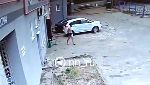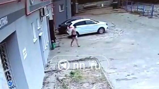 В Нижнем Новгороде полуголый мужчина в наручниках сбежал с поста ДПС и вкатился в автосервис. Запись инцидента опубликовал NN.Ru.