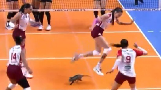 Выбежавший на площадку опоссум распугал волейболисток на игре в Бразилии (видео)