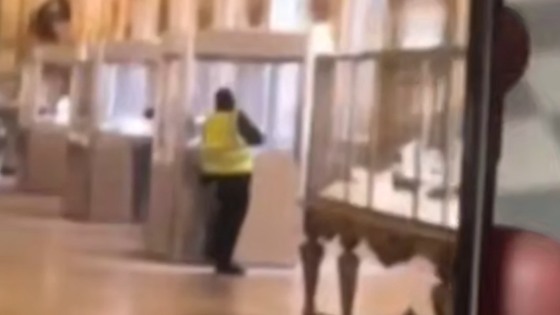 На опубликованной записи можно увидеть, как мужчина в желтом жилете, притворившись сотрудником музея, спокойно вскрывает витрину прямо на глазах у посетителей.