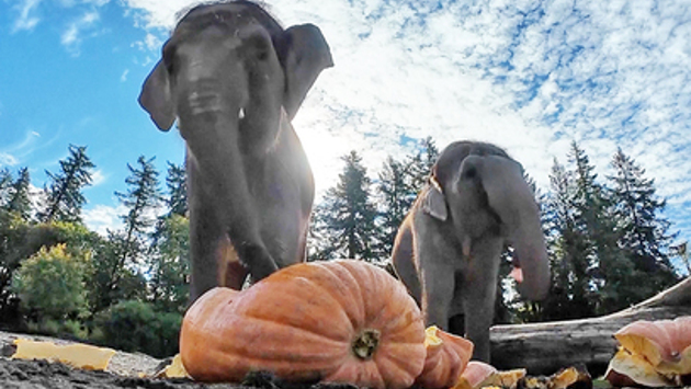 Каждый год местный клуб овощеводов дарит обитателям гигантские тыквы, вес которых доходит до полутонны. Взрослые особи под одобрительные крики наблюдающих давят овощи ногами, чтобы потом ими полакомиться. В то время как слоненок Тула-Ту старательно отрабатывает навыки игры в воображаемый футбол.