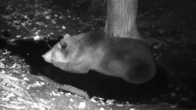 Ранее ночной налет медведя-угонщика попал на видео. На ролике было видно, как пушистый сначала осматривается по сторонам, потом хватает бак лапами и с уверенностью выкатывает его со стоянки.