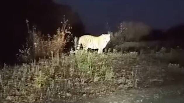По словам жителей поселка Подъяпольское, тигра начали замечать в окрестностях около недели назад. За это время он утащил в лес несколько собак. Крупный зверь не боится людей и машин и смело выходит на трассу. Пугающий водителей хищник спокойно прогуливается возле местной АЗС.
