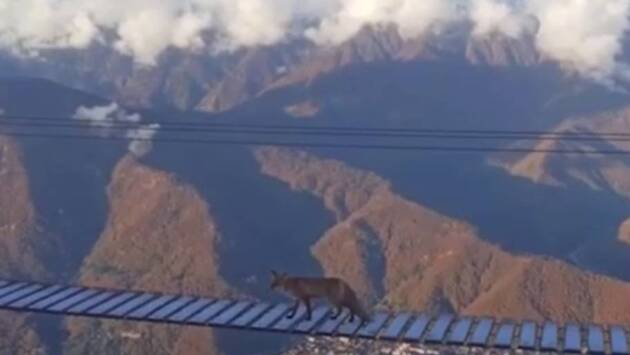 Лиса прошла по подвесному мосту на высоте 2200 метров и попала на видео