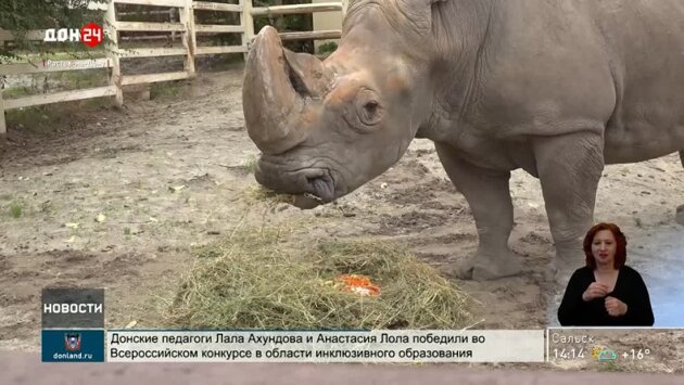 Ростовская область, 28 октября 2025. Телеканал «ДОН 24». Носорог Зион отметил свой 38-й день рождения. Уже восемь лет он живет в Ростовском зоопарке. Это, кстати, единственный зоосад в России, где постоянно обитают белые носороги. Для именинника сотрудники приготовили праздничный торт – из сена, петрушки и моркови. Елена Кузнецова, куратор коллекции Ростовского зоопарка: «Можно сказать, что приехал сюда на заслуженный отпуск. Он в заповеднике работал отцом – отцом всех, большинства носорогов, которые там были. После того, как он перестал там работать, его передали к нам в зоопарк вместе с молоденьким самцом Теркелем, который вместе с ним и приехал». Белые носороги в среднем живут около 35 лет. Благодаря внимательному уходу и комфортным условиям зоопарка в свои 38 Зион чувствует себя очень бодро. А рядом с его вольером поселились соседи – пара лебедей. Это новая зона отдыха – «Лебединое озеро». По словам сотрудников, у грациозных птиц будет и пополнение. Пока же пернатое озеро стало местом привала для перелетных птиц. Больше новостей в нашем канале в МАХ - https://max.ru/don24tv