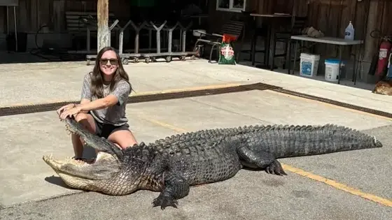 Бриттани Ливингстон добыла рептилию длиной 3,5 метра. В Южной Каролине выдают всего 1400 лицензий на отстрел аллигаторов в год, и Ливингстон с мужем Мэттом не могли получить разрешение с 2020-го. Однако в этом году им повезло, и они отправились на охоту. Паре понадобилось несколько часов, чтобы выследить рептилию, которая весила почти 250 килограммов.