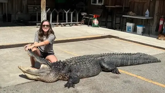 Женщина добыла огромного аллигатора и решила съесть его