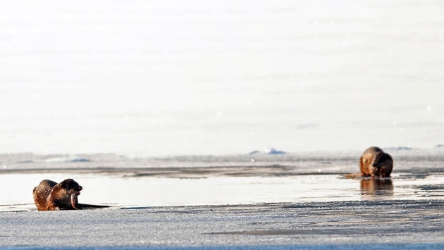 Снегири, конечно, будут еще ярче и алее, но их немного, и долго они на кордоне не гостят. Клестов же иногда так много, что стаи их на льду у воды кажутся единым организмом, когда они все разом взмывают и рассаживаются на ближних деревьях.