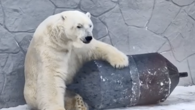 Есть видео: в Ростове белый медведь развлекается с буем