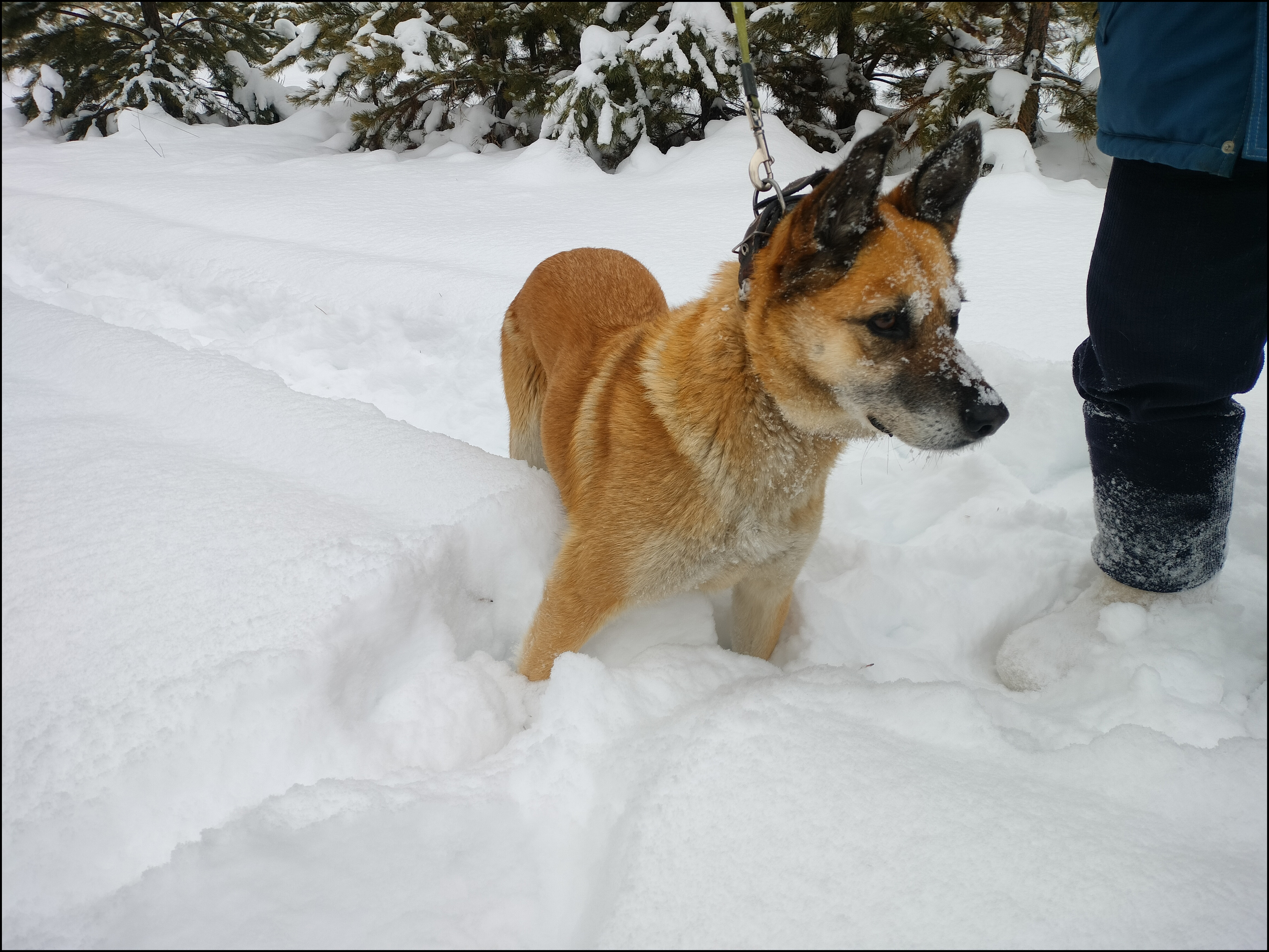 Я чуть подрезала фотографию, не нарушая пропорций. И это уже другая картинка, из кадра исключен небольшой массив справа, указывающий нам горизонт, и вот собака уже уходит в бесконечность. При этом иллюзия глубины пространства не исчезает, изображение не становится плоским, и это за счет следов на снегу, идущих вглубь кадра, поводок — дают перспективу.