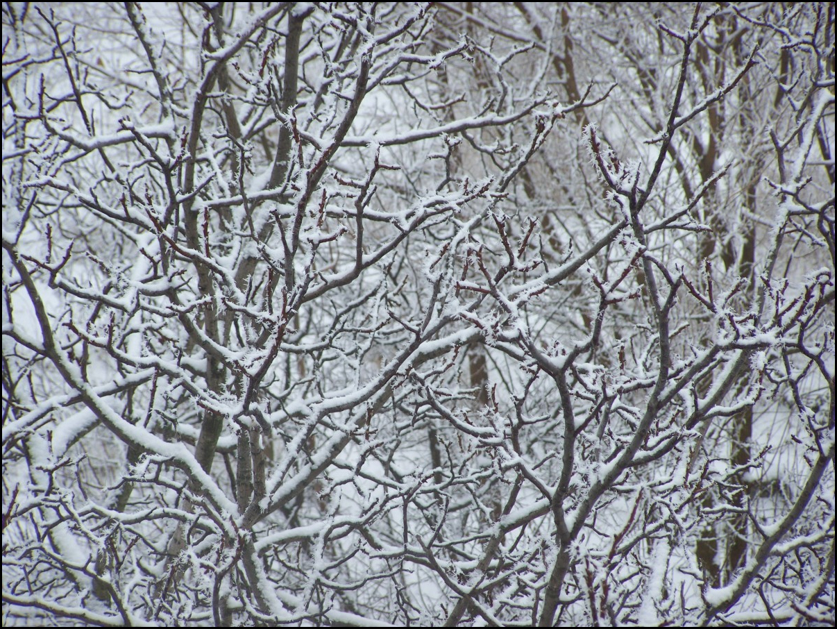 Среди конкурсных работ было много фотографий с заснеженными ветками. Их трудно снимать, растут как хотят, на фото просто невнятный хаос. Евдокии удалось создать какое-то кружево, орнамент из ветвей.