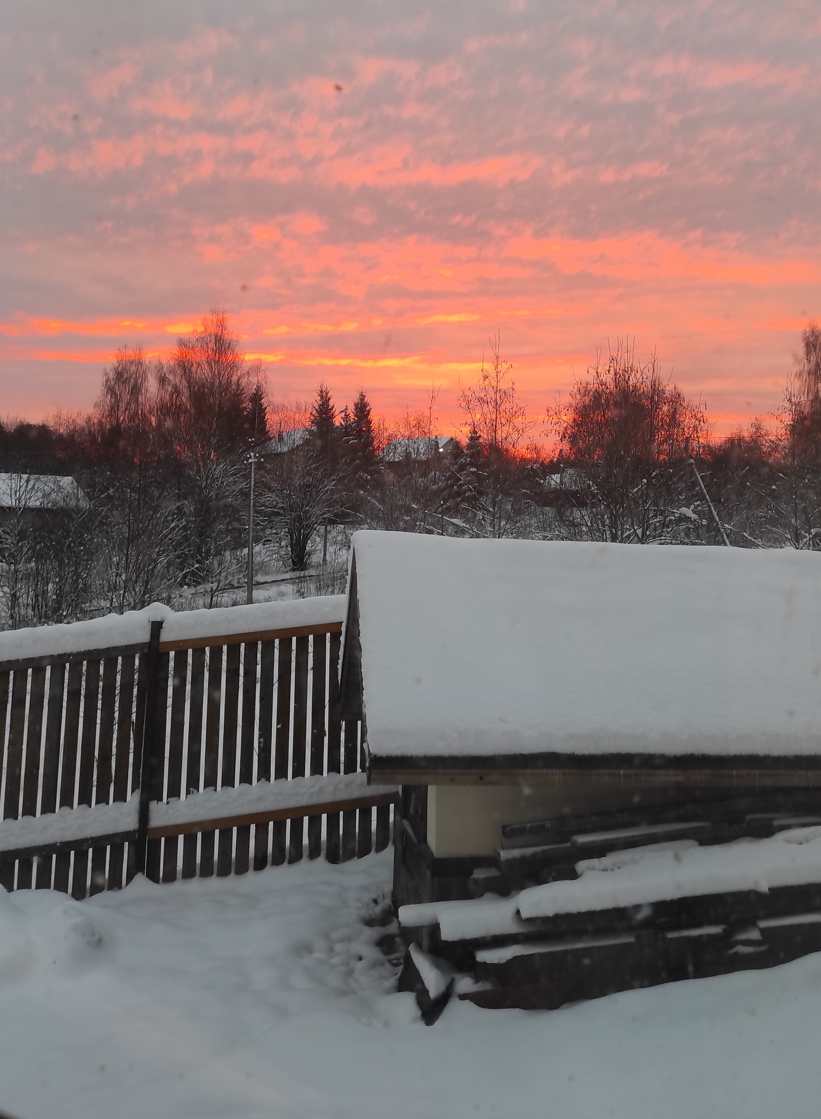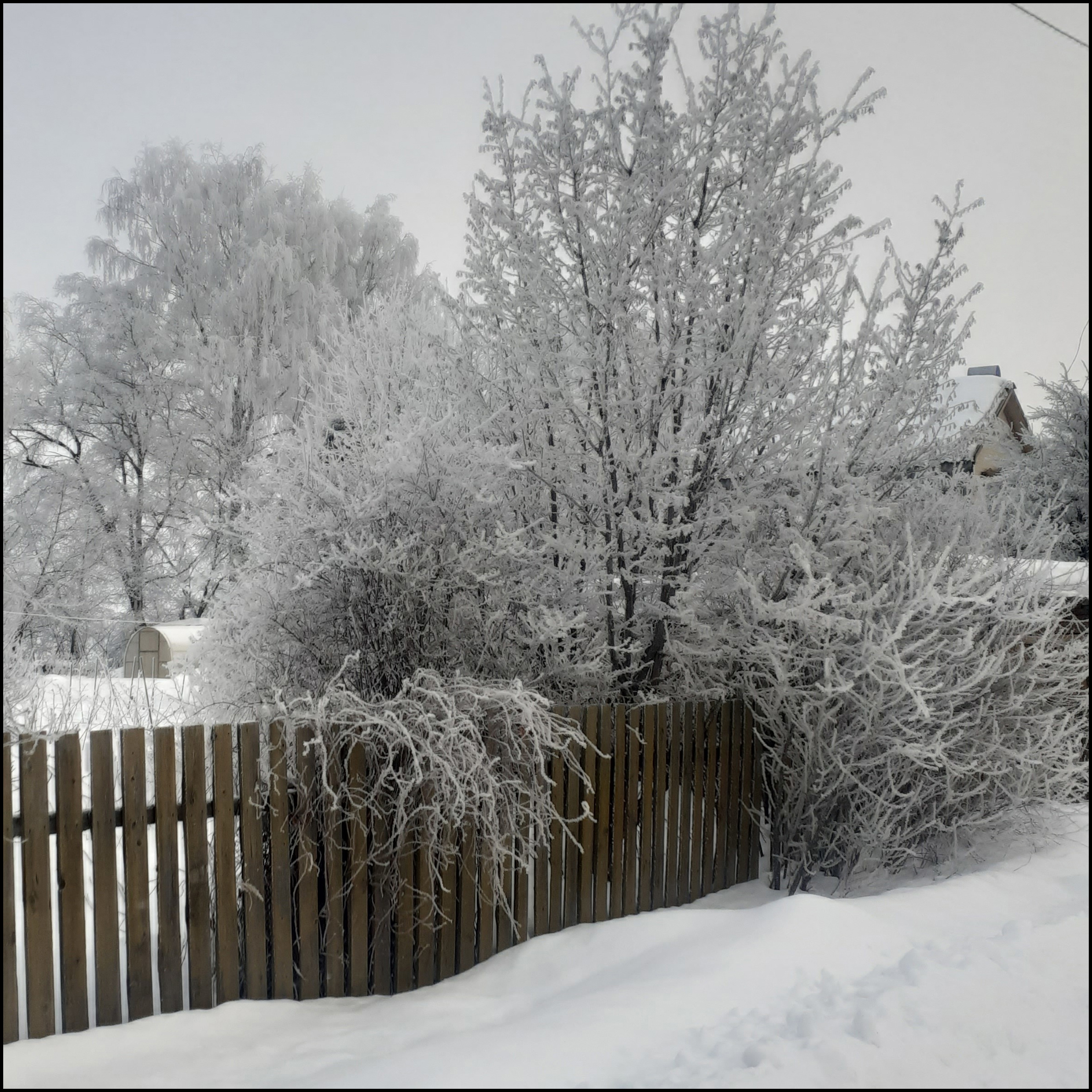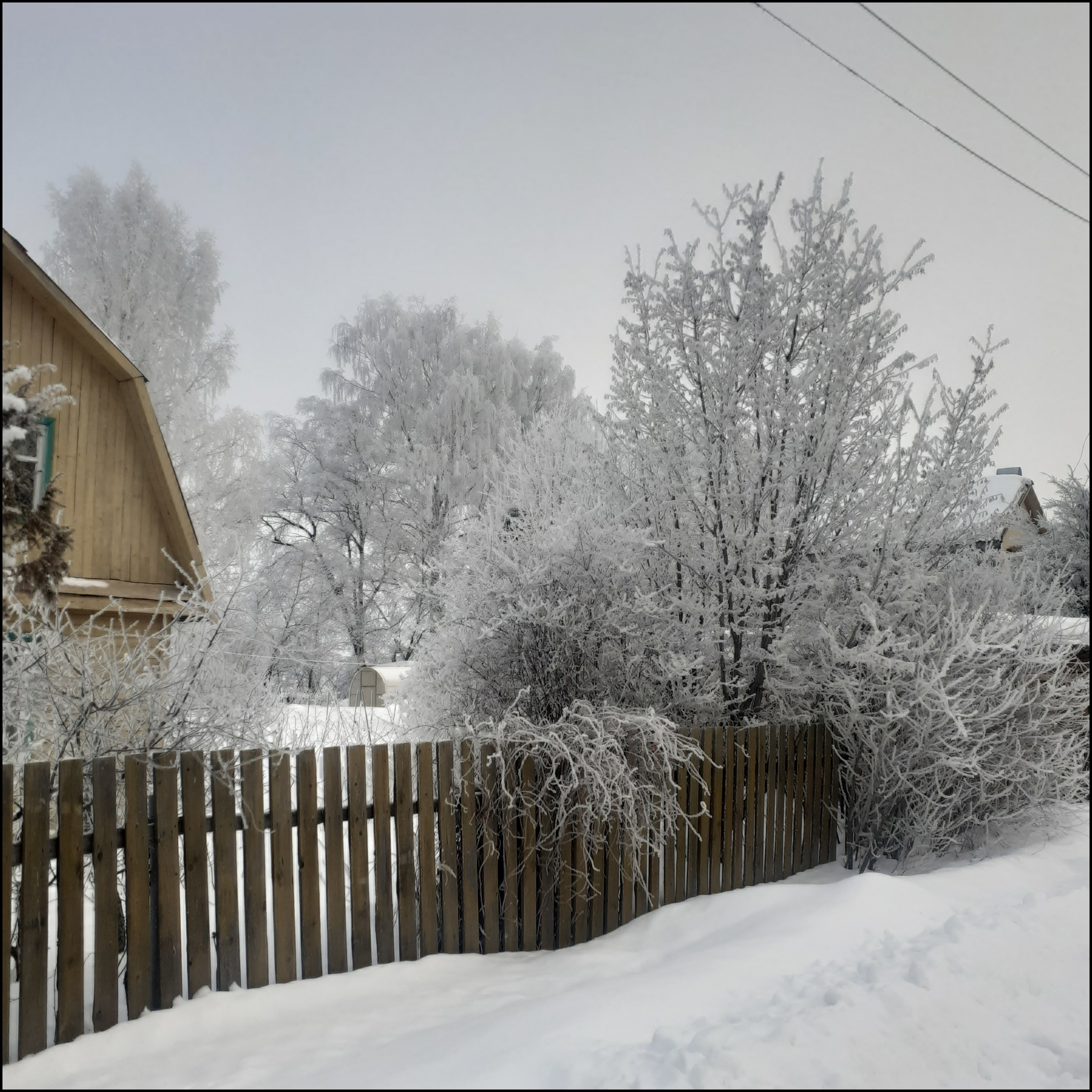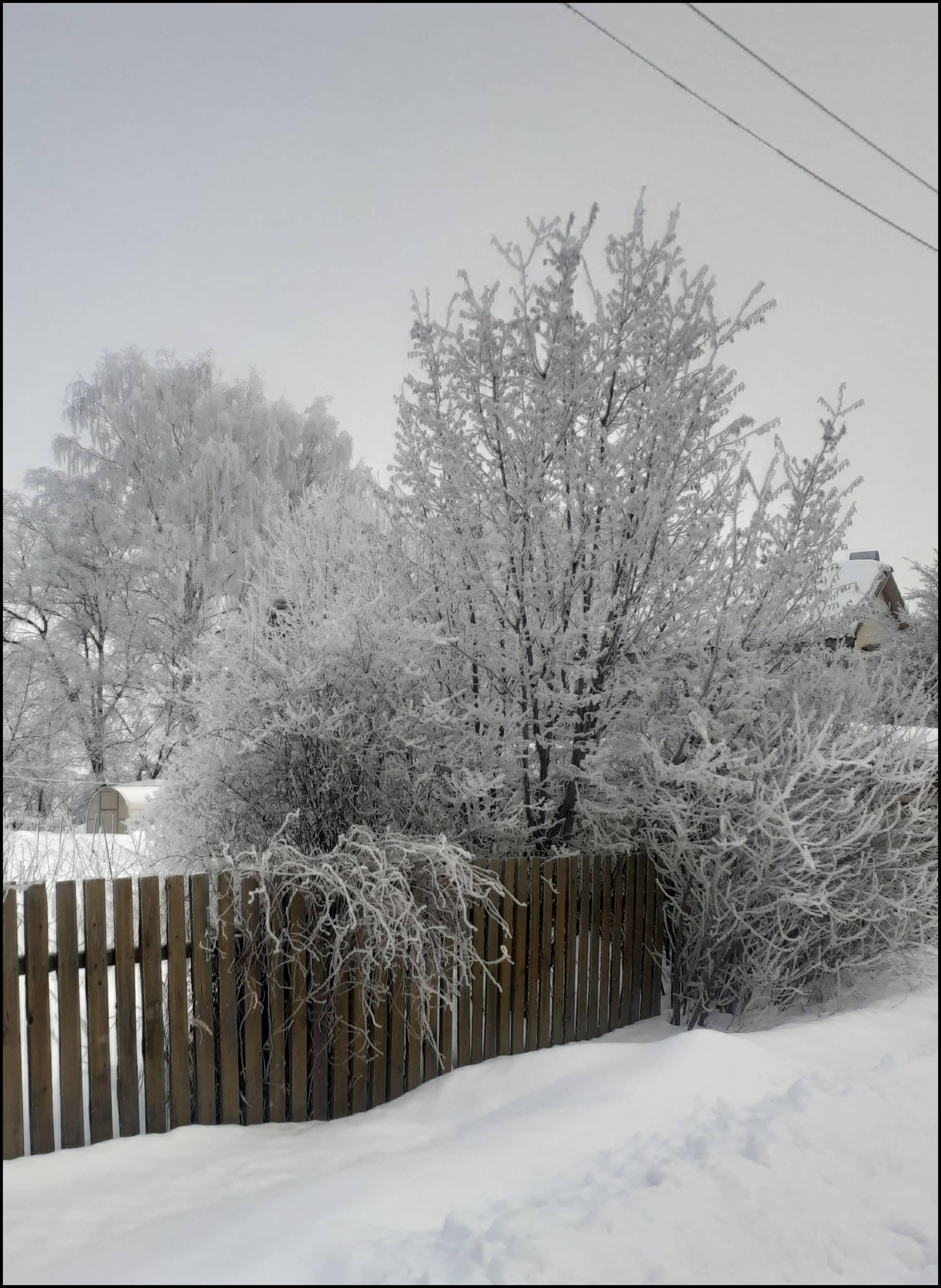 Но непонятно, что делает часть дома слева? Вполне допускаю, что автор не видел его при съемке. Ведь такие красивые заснеженные деревца и кустики...