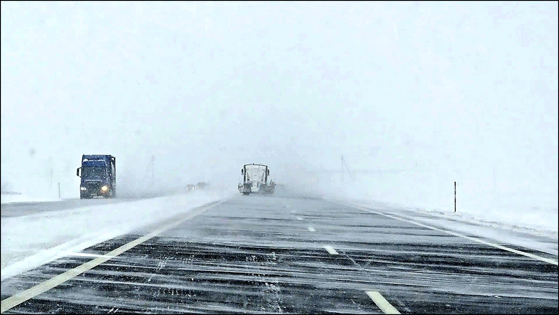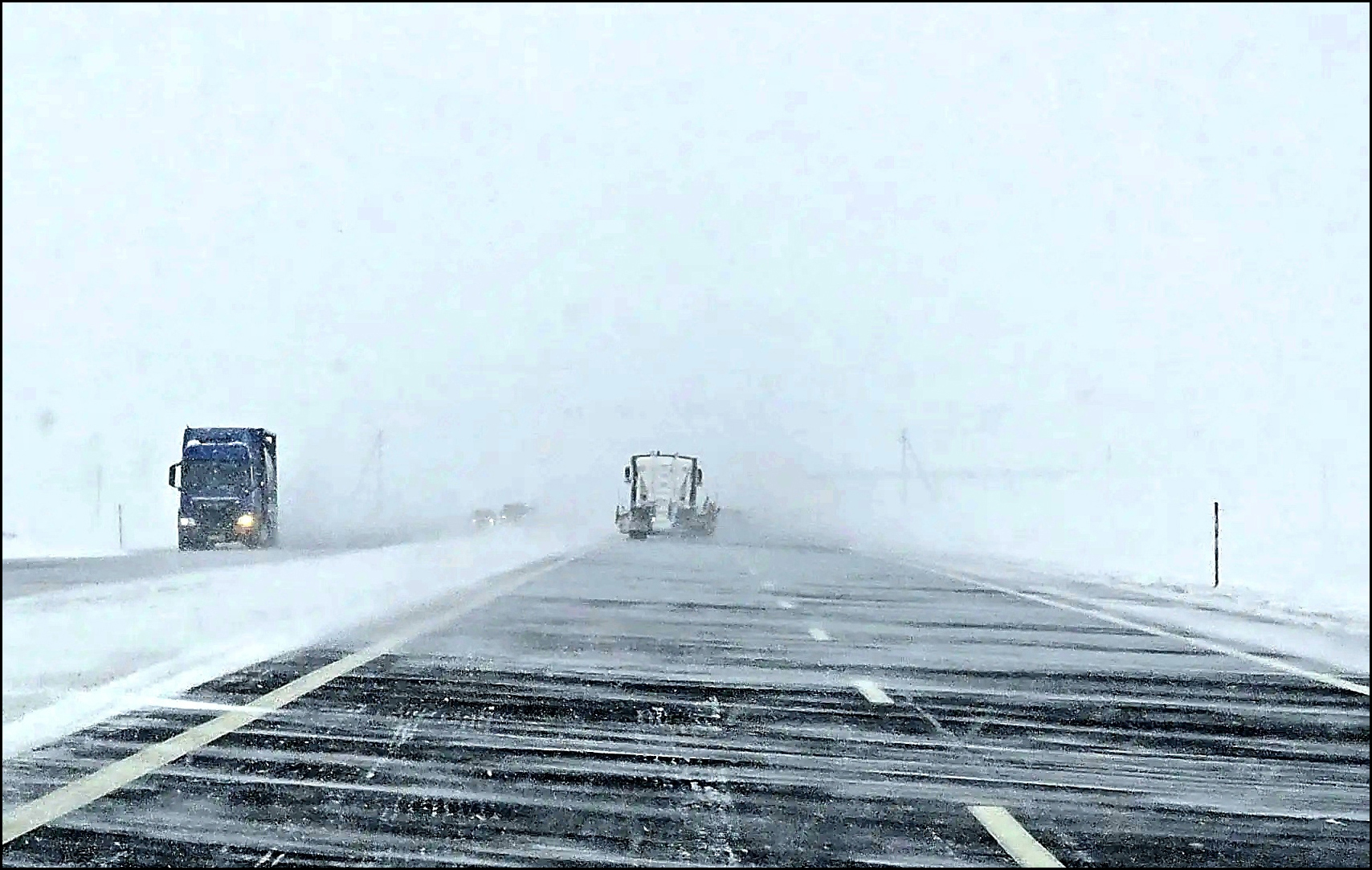 Ну просто прекрасное фото! И это снято на ходу, на трассе. Быстрая реакция, и машина на встречке кстати, и поземка на переднем плане, ничего лишнего в кадре...