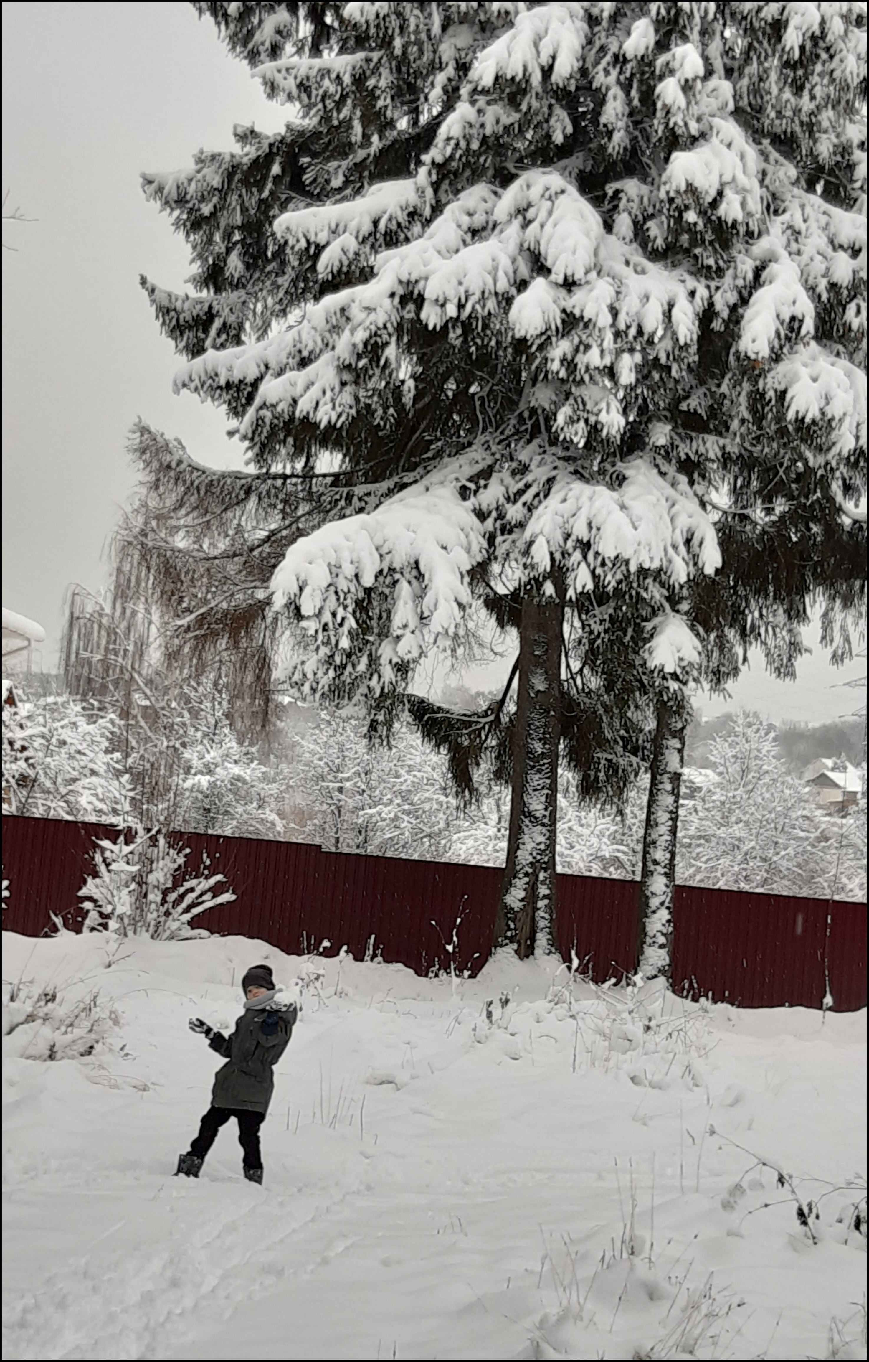 Часто рекомендуют включение человека в пейзаж, чтобы оживить его, но это — не тот случай. Иногда в кадр «запускают» человека, чтобы подчеркнуть масштаб чего-то, так как его размер мы знаем (какие огромные лапы ели по сравнению с ним на фото). Но это — не получилось. С этой задачей прекрасно справляется забор, мы все дачники, и мы чувствуем мощь этих деревьев, сопоставив с ним.