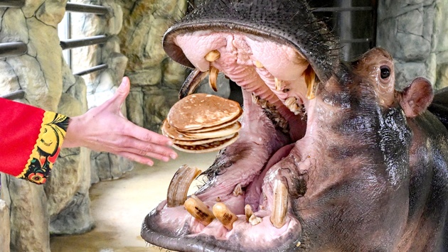 В Крыму испекли самый большой блин в мире и скормили чучело зимы бегемоту