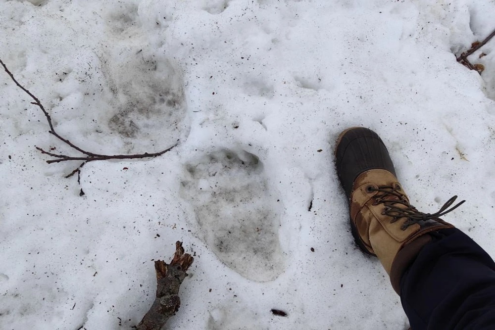 Спустя время инспектор и научный сотрудник заповедника Евгения Волкова снова прошли по этому же маршруту, нашли следы медведя, а затем получили кадры с фотоловушки.
