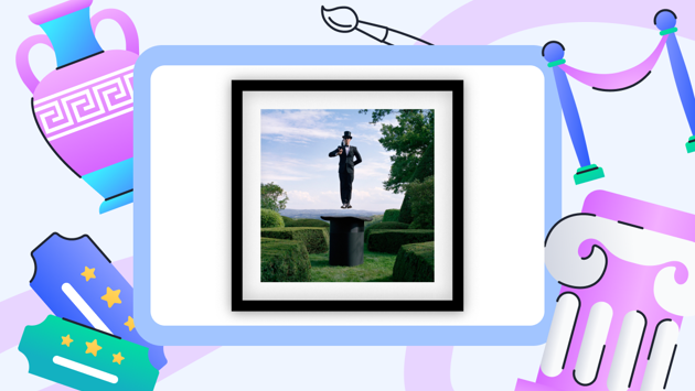Работы американского художника Родни Смита можно назвать кадрами-сновидениями, в которых герои часто парят в воздухе или балансируют на краю пропасти. На одном из них изображён мужчина в смокинге, который выпрыгивает из цилиндра, расположенного посреди фигурного английского сада. Абсурдистская атмосфера «Алисы в Зазеркалье» в этом снимке сочетается со строгостью мужского образа, который может быть прочитан как отсылка к наследию Рене Магритта.