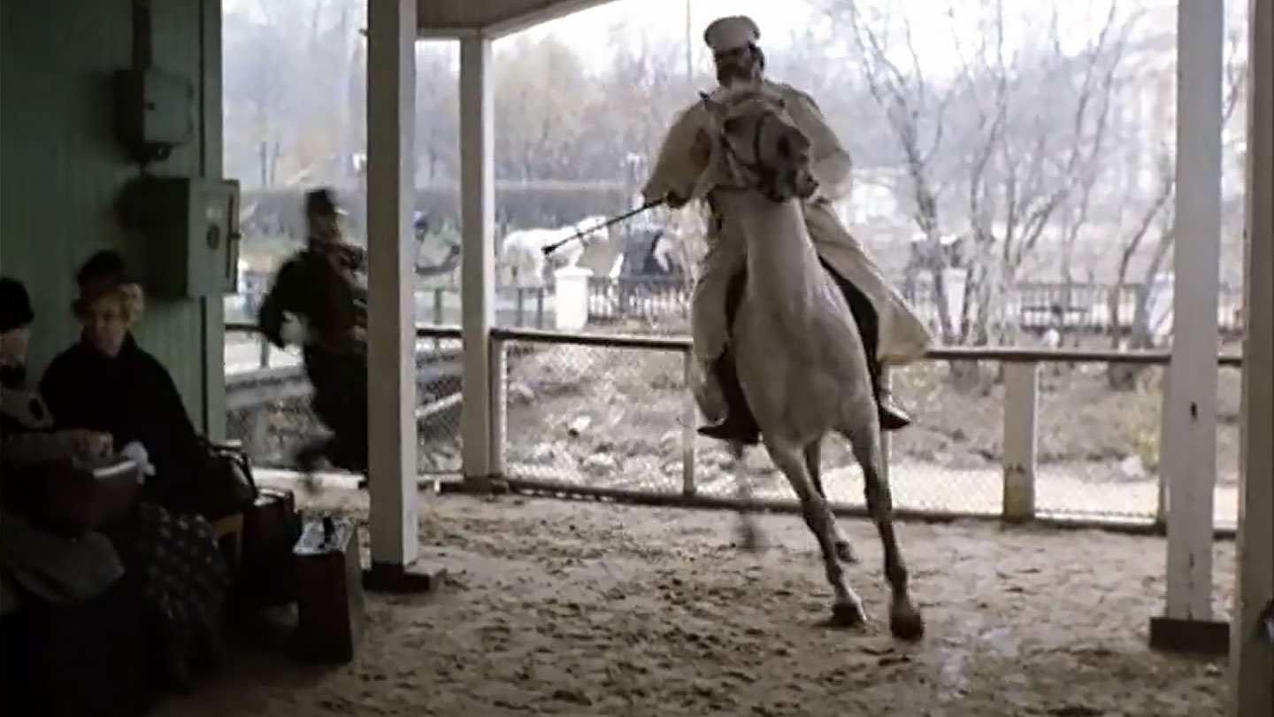 Несколькими секундами позже Паратов въезжает на коне на пристань, усыпанную песком. Пристань засыпали песком, чтобы лошадь не упала при манёврах. А при монтаже его просто забыли стереть.