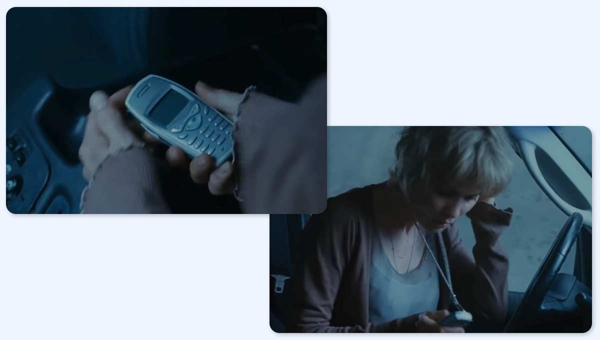 После пропажи Шэрон из машины Роуз обследует город и затем снова возвращается в машину. Она вытаскивает мобильник из бардачка. Но через секунду, когда женщина начинает звонить мужу, телефон уже закреплен на цепочку и висит у неё на шее.