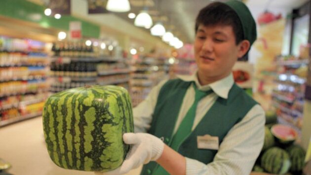 Сельскохозяйственный кооператив города Дзэнцудзи на острове Сикоку начал отгрузку в магазины первой партии квадратных арбузов урожая этого года, сообщила администрация города. Квадратные арбузы являются уникальным произведением фермеров города. Считается, что их форма более удобна при транспортировке, но фермерам сложнее поддерживать их товарный вид. Около 20-30% от урожая приходится списывать как брак из-за царапин и повреждений. "Квадратный арбуз" представляет собой геометрический куб со сторонами 18 сантиметров. Сельхозкооператив города разработал технологию и начал выращивать этот вид арбузов около 30 лет назад. В основном их покупают супермаркеты для украшения витрин в отделах фруктов и овощей. "Этот вид арбузов является исключительным продуктом Дзэнцудзи и пользуется большим спросом как декоративный фрукт не только в супермаркетах Японии, но и продается на экспорт в Канаду и Россию. Цена одного арбуза составляет около 15 тысяч иен (около 120 долларов), почти все арбузы первой партии распроданы", — сообщает администрация города. Первая партия состоит из 250 ягод. В прошлом году японские СМИ живо откликнулись на известие о том, что российские магазины продавали квадратные арбузы в восемь раз дороже, чем в Японии — по курсу на то время этот составляло около 800 долларов.