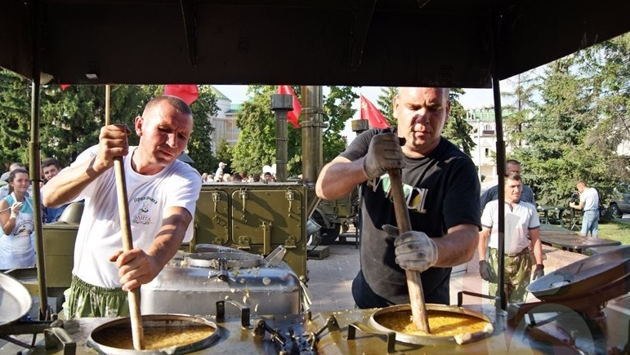 В Белгороде установили рекорд России по количеству приготовленной за раз солдатской каши. Как сообщает Fonar.Tv, это произошло в рамках приуроченного к празднованию Дня города мероприятия, которое прошло в парке Победы 5 августа. Всего поварам удалось сварить 1945 литров блюда. Отмечается, что при его приготовлении использовалось одинаковое количество пшена и тушенки, произведенной в Белгородской области. Для регистрации достижения в город прибыл генеральный арбитр Российского комитета по регистрации рекордов планеты Вадим Горюнов. Как отмечает телеканал LifeNews, ему помогали волонтеры, которые сумели насчитать более семи тысяч порций блюда. Готовой кашей угостили местных жителей. В июне 2015 года в Кашине (Тверская область) был установлен рекорд по приготовлению гречневой каши. Тогда удалось сварить около 1,3 тысячи литров блюда. За год до этого в Вологде на Масленицу испекли гигантский блин, диаметром три метра, а в 2009 году в Запорожье поставили рекорд по приготовлению борща. Из 120 килограммов картофеля, 45 килограммов моркови, 96 килограммов свеклы, 25 кур и 20 литров томатной пасты поварам удалось сварить 600 литров супа.
