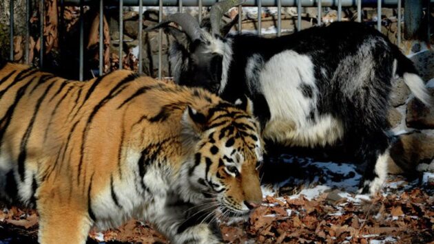 Козел Тимур за время соседства с тигром Амуром прибавил в весе
