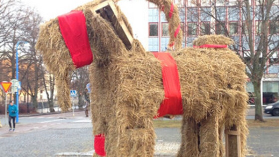 В Швеции злоумышленники в очередной раз сожгли соломенную фигуру козла, которую на Рождество традиционно устанавливают в городе Евле. Об этом сообщает Aftonbladet. Инцидент произошел около 03:15 (05:15). Полицейский патруль заметил дым рядом с Замковой площадью в Евле. Подъехав ближе, он увидел горящего козла. Спасти его не удалось, и спустя около сорока минут он полностью сгорел. Двоих злоумышленников с закрытыми балаклавами лицами заметил находившийся на месте охранник. За одним из них он погнался. Полицейским удалось задержать предполагаемого преступника, им оказался 25-летний мужчина, находившийся в состоянии опьянения. От него пахло горючим веществом. Подозреваемый был водворен в камеру, после вытрезвления его допросят. Полиция продолжает поиски второго поджигателя. Козла, который является символом зимних праздников Скандинавии, устанавливают в Евле с 1966 года. С первого же года покрытая соломой фигура стала объектом нападения вандалов, в большинстве случаев ее сжигали. В прошлом году козлу удалось избежать подобной участи.