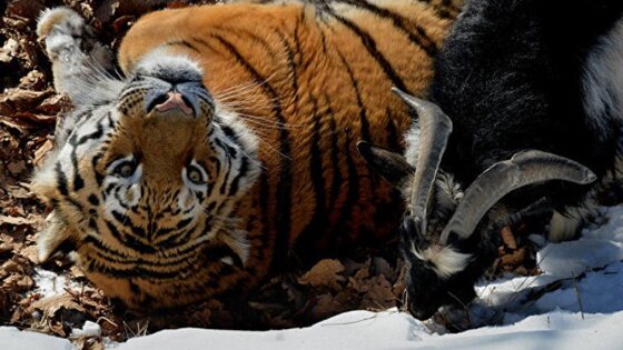 Регбийная премьер-лига России прислала подружившимся тигру Амуру и козлу Тимуру на 23 февраля подарки — регбийные мячи, сообщает сайт Приморского сафари-парка. "От всей души передаем начинающим спортсменам регбийные мячи, календарь и правила игры в регби. Надеемся на то, что успехи Тимура и Амура в любимой нами игре не заставят себя ждать", — говорится в письме от Лиги. На сайте сообщается, что Амур оценил подарок. На размещенном там же видео тигр играет с подвешенным за веревку мячом, а после зубами отрывает его и уносит прочь, как добычу. Тимуру на праздник привезли новую претендентку в невесты — козу по имени Звёздочка. Животные обнюхались и вместе пожевали сено. «Тимур оценил новую даму спокойно — не лупил её рогами с азартом. Коза Манька подруге обрадовалась и стала резвиться. Оно и понятно. Будет теперь с кем обсуждать козлов», — пишет на сайте директор парка Дмитрий Мезенцев. Тимура и Амура расселили после того, как 26 января тигр проучил козла, взяв за шкирку и скинув со склона. Травмы у козла были достаточно серьезные, его лечили антибиотиками и противоотечными препаратами. Сейчас животные живут в соседних вольерах.