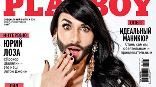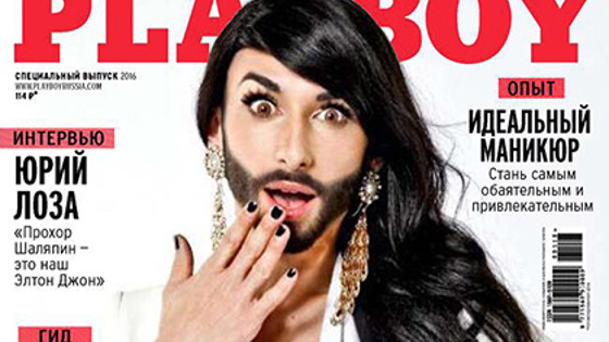 Российский Playboy опубликовал в Facebook шуточную обложку к 1 апреля с певцом Томасом Нойвиртом, больше известным как Кончита Вурст. Фото подписано фразой: «Кончита Вурст показала все, что скрыто». Среди материалов, которые могли бы войти в номер с Вурст, интервью с Юрием Лозой под заголовком «Прохор Шаляпин — это наш Элтон Джон», гид «55 причин побрить ноги», статья «Идеальный маникюр. Стань самым обаятельным и привлекательным», а также новости о том, что Анна Семенович уменьшила грудь, а Лена Ленина примерила ватники. Ранее Нойвирт заявлял, что готов раздеться только для Vogue, но не для Playboy. В июне 2015 года его фото топлес появилось на обложке немецкой версии журнала Rolling Stone. Образ бородатой Кончиты Вурст был создан, чтобы показать отношение Нойвирта, выступающего в защиту толерантности и отказа от традиционных гендерных ролей. В этом образе ему удалось победить в песенном конкурсе «Евровидение» 2014 года с песней Rise Like a Phoenix.