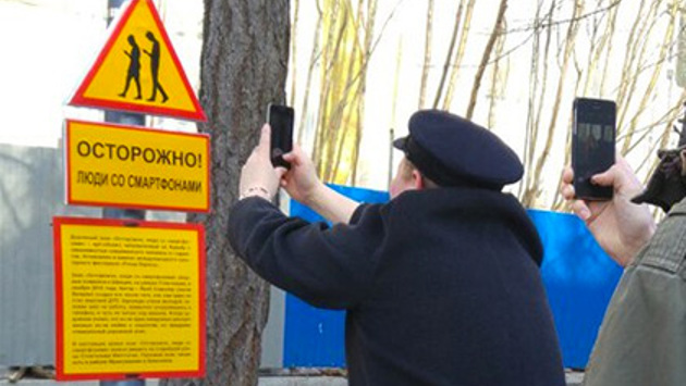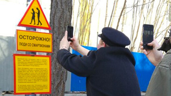 В Мурманске в рамках международного культурного фестиваля «Птица Баренц» открыли дорожный знак «Осторожно, люди со смартфонами!». Установленный в одном из городских скверов арт-объект, по словам организаторов, направлен на борьбу с зависимостью современных людей от интернета и социальных сетей. Об этом в среду, 13 апреля, сообщает телеканал «ТВ-21». Пока табличка существует только в качестве арт-объекта, однако опрошенные каналом жители города отметили, что такие знаки не мешало бы установить и «по-настоящему». По их словам, то, что многие пешеходы и водители пользуются смартфонами во время движения, часто приводит к возникновению опасных ситуаций. Подобные знаки уже есть во Франкфурте-на-Майне, Лондоне и Хельсинки. Впервые красно-желтый треугольник, предупреждающий об опасности смартфонов, появился в Стокгольме в ноябре 2015 года. Якоб Сэмплер, автор проекта, рассказал, что придумал такой знак после того, как сам чуть не попал под машину из-за того, что шел по улице, уткнувшись в смартфон. Сэмплер также пошутил, что знак вряд ли сможет кому-то помочь, потому что те, кому стоило бы его увидеть, смотрят не по сторонам, а в экраны своих смартфонов.