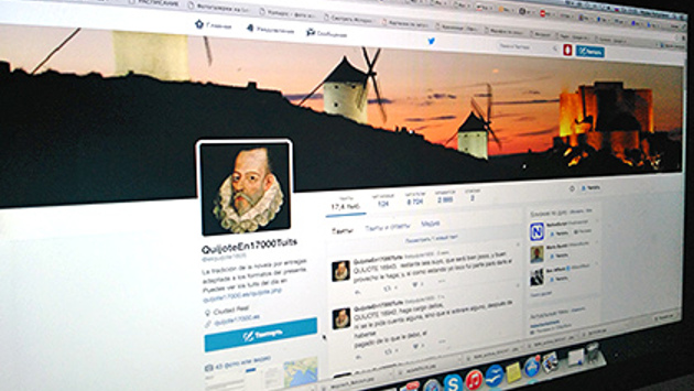 Барселонский компьютерный инженер Диего Буэндиа (Diego Buendia) опубликовал в Twitter почти весь роман Сервантеса «Дон Кихот». Для этого он разложил текст более чем на 17 тысяч коротких постов, сообщает Phys.org. Находящийся на пенсии 55-летний испанец создал алгоритм, который разбил произведение на отрывки до 140 символов. Он публиковал по 28 фрагментов каждый день в отдельном аккаунте. На Twitter Буэндиа подписались больше восьми тысяч человек, в том числе премьер-министр Испании Мариано Рахой. Последний твит Буэндиа намерен разместить 22 апреля, в годовщину смерти Сервантеса (400 лет). Роман «Дон Кихот» («Хитроумный идальго Дон Кихот Ламанчский») публиковали в двух частях. Первый том вышел в 1605 году, второй — в 1615-м. Произведение перевели на все основные мировые языки, по нему ставили спектакли и мюзиклы; книга легла в основу более 50 фильмов и сериалов.