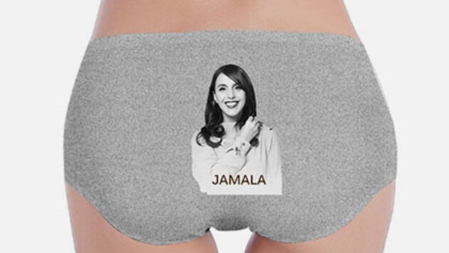 На Украине поклонникам победительницы «Евровидения-2016» Джамалы предлагают приобрести нижнее белье с ее портретом. Трусы с изображением певицы появились на сайте Amazon. На американской торговой площадке трусы с расположенным сзади принтом с украинской исполнительницей и надписью Jamala предлагаются в двух расцветках — черной и серой. Приобрести предмет нижнего белья можно за 17,89 доллара (1154 рубля по текущему курсу). Как сообщает бизнес-приложение украинского интернет-издания «Вести», на одной из местных торговых онлайн-площадок предлагается гораздо более широкий выбор товаров с символикой «Евровидения» и портретом его победительницы. Так, тряпичную сумку с ее изображением можно купить за 234 гривны (603 рубля), женские и мужские майки, футболки и свитшоты — за 434 (1119 рублей) и 784 гривны (2023 рубля) соответственно. 14 мая в финале «Евровидения-2016» победила представительница Украины Джамала с песней «1944». Страна будет принимать конкурс в следующем году.