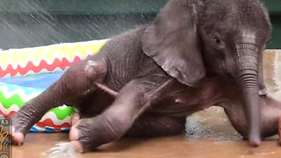 На официальном YouTube-канале зоопарка Далласа появилась видеозапись купающегося в бассейне двухмесячного слоненка. В ролике ушастый малыш принимает летний душ и в первый раз в жизни окунается в надувной бассейн. На видео обратило внимание Mashable. В комментариях под роликом пользователи рассказали, что водные процедуры слоненка вызвали у них «огромные улыбки» и заметили, что животное купалось где угодно, но не в самом бассейне.
