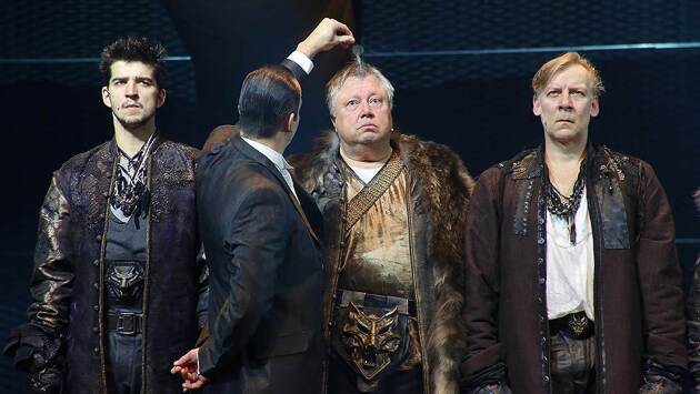 Московский театр "Ленком" показал премьеру спектакля "День опричника" по произведениям Владимира Сорокина в постановке художественного руководителя театра Марка Захарова. Рассказывает РОМАН ДОЛЖАНСКИЙ. К этой премьере Марк Захаров готовился несколько лет -- знаменитой антиутопии Владимира Сорокина "День опричника" в этом году исполняется десять. Театральный замысел, разумеется, моложе, и о перипетиях истории взаимоотношений автора и режиссера можно прочитать в предпремьерных интервью. Из слов Марка Захарова следует: автору кажется, что время для "Опричника" в театре уже прошло. Режиссер же считает, что вот именно теперь и настало. Изолированная от всего остального мира, отъехавшая назад в средневековье и побежденная квасным патриотизмом и карикатурным православием Россия в романе Сорокина живет в 2027 году. Марк Захаров относит события к более отдаленному будущему; действие, как сообщает программка, происходит "через 100 лет после премьеры". Дистанция, однако, меняет оптику режиссерского взгляда самым неожиданным образом -- казалось бы, отнесение событий в столь далекое будущее освобождает от необходимости подслащивать сорокинские мрачные пророчества. Но Захаров, сохранив изумительный кураж и желание говорить со зрителем о неудобном и страшном, не может преодолеть обязательство давать свет в конце тоннеля. Спектакли Захарова -- режиссерские фантазии, он один из тех, кто всей своей жизнью в театре доказал абсурдность рассуждений "о границах интерпретаций". Вот и в роман "День опричника" он вмешался активно и уверенно. Собственно говоря, лишь первые сцены спектакля -- а именно пробуждение опричника Андрея Комяги, от лица которого в книге ведется повествование, и его выезд на задание -- следуют канве сорокинского романа. Потом все меняется. Что-то -- для насущных нужд театра и зрителя, что-то -- ради проявляющейся в финале идеи. Новых текстов и диалогов много, некоторые из них очень удачно подражают сорокинскому стилю, некоторые -- не очень. Так, эпизодическая в романе роль государя Платона Николаевича выросла до полноценной -- автор "возрожденной" России то и дело меняет маски изнеженного грассирующего аристократа и бесстрастного, равнодушного хозяина (на премьере его играл Дмитрий Певцов, но рисунок роли, кажется, гораздо больше подойдет второму исполнителю -- Виктору Вержбицкому). Изменено назначение в сюжете ясновидящей Прасковьи Мамонтовны -- впрочем, расхристанная, шпыняющая китаянок-служанок голосистая баба в исполнении Татьяны Кравченко все равно была бы вставным номером. Как и появление буквально на пару минут на сцене Леонида Броневого -- крохотная роль сочинена режиссером, для развития истории не нужна, но зал это успокаивает: пока любимый актер с нами, опричники не пройдут. Пожалуй, лучшие "номера" все-таки у Ивана Агапова -- оба действия открываются его монологами, молитвами, взятыми из романа Сорокина "Теллурия". Вообще, пролог спектакля -- лучшая его сцена: наряженный высшим иерархом церкви, с большими золотыми часами на запястье и каменным взглядом из-под клобука герой Агапова выглядит по-настоящему зловеще. Зал даже боится смеяться -- настолько страшно звучит эта смешная мракобесная языковая твердыня. И еще страшнее становится, когда, подобрав длиннополые одежды, священник тяжелой птицей спрыгивает куда-то вниз, в п