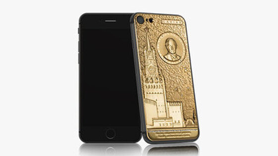 Российский бренд люксовых смартфонов Caviar объявил о выпуске новой модели Supremo Putin Quattro Volte («Великий Путин в четвертый раз»), посвященной тому, что президент России в четвертый раз подряд признан самым влиятельным человеком в мире по версии Forbes. Об этом корреспонденту «Ленты.ру» сообщила пресс-служба компании. Модель выпущена лимитированным тиражом из 44 экземпляров и выполнена в уникальной технике, объединяющей объемные барельефы и гравировку по металлу в единую композицию. Телефон инкрустирован бриллиантами, которые украшают изображение Собора Василия Блаженного и Спасскую башню Кремля. Драгоценные камни отделяют панно с изображением от строк гимна: «Россия — священная наша держава, Россия — любимая наша страна» и разделяют между собой имя, фамилию и отчество президента. Всего для украшения композиции использовались 46 бриллиантов. Спасская башня Кремля на смартфоне увенчана звездой с рубином. Центральным элементом в дизайне телефона является скульптурный барельеф Владимира Путина, представленный анфас. Цена телефона составляет 297 тысяч рублей. Компания Caviar основана итальянским ювелиром Илией Джакометти. Первый декорированный смартфон она представила в 2001 году. С 2015-го управление делами фирмы перешло в Россию.