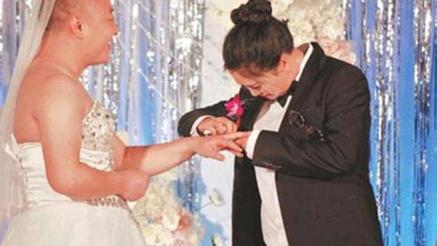 В Китае жених надел свадебное платье из-за страха невесты показаться толстой