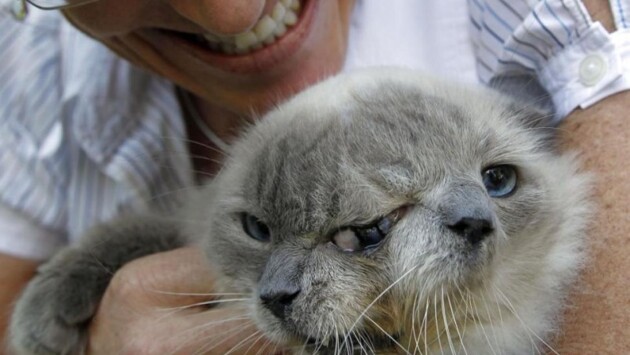 Френка и Луи не зря считают самым необыкновенным котом на планете. Этот котик родился в 1999 году и сразу после рождения попал в школу ветеринарной медицины, где получил диагноз - дипрозоп. Как правило, животные, которым поставлен такой диагноз, не живут более недели. Вот и ветеринары, принимавшие Френка и Луи, ожидали скорой смерти пациента в ближайшие 3-4 дня.Тем не менее одна из медсестер ветеринарной школы, Марта Стивенс, решила рискнуть и забрать котенка домой. И ее желание выходить Френка и Луи было настолько велико, что в течение трех месяцев ей приходилось кормить этого малыша через трубку, но это того стоило: котенок сам начал кушать и ухаживать за собой. Внешний вид котику совсем не принес несчастья, а наоборот: он начал купаться во внимании и стал любимчиком всех друзей хозяйки. Френк и Луи родился с одним мозгом, но двумя мордами. Несмотря на то, что функционировал только один рот, обе челюсти были хорошо развиты, что является редкостью. Средний глаз Френколуи даже не моргает и является бездейственным. Особенно устрашающе это выглядит, когда котик спит.В 2012 году кот попал в Книгу рекордов Гиннеса как самый старый в мире кот-янус. А в 2014 году Френк и Луи стал себя плохо чувствовать и начал отказываться от еды. После того, как хозяйка принесла его на обследование в ветеринарную школу, оказалось, что Френк и Луи болен агрессивной формой рака. Чтобы облегчить смерть своего любимца, Марта согласилась усыпить кота. И 4 декабря 2014 года самый старый кот-янус ушел из жизни.Сейчас Марта продолжает свою работу ветеринарной медсестрой и с удовольствием берется выхаживать безнадежно больных животных. Кроме того, Марта не раз заявляла, что очень скучает по Френку и Луи и не задумываясь взяла бы еще одного питомца-дипрозопа.
