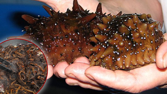 Вряд ли сегодня что-то такое можно найти на полках в уже "обычных" нам супермаркетах. А продавцы, скорее всего, пожмут плечами или предложат вам специю куркуму. Однако речь сегодня пойдет не о пряности, а о морском деликатесе. На Дальнем Востоке и Сахалине кукумария имеет название "морской огурец", а японцы считают блюдо из кукумарии национальной гордостью. По сути кукумария является беспозвоночным животным, обитающим на дне морском на глубине ~50-100 метров. Чаще всего окрас этих представителей семейства глотуриевых может быть от иссиня-черного до бурого. В длину кукумария не превышает 40 см, а если ее вытащить из воды, то и вовсе сужается до размера в 12-17 см.Впрочем, вам не придется ни идти рыбачить, чтобы поймать кукумарию и приготовить из нее изумительное блюдо, ни чистить животное. Как правило, на местных японских рынках это существо продается в варенно-замороженном или просто замороженном виде. Кроме того, кукумария входит в состав консервов-миксов с морепродуктами или продается как "самостоятельные" консервы. Даже поклонники экзотической кухни не рискнут употребить морской огурец в сыром виде. Ведь истинный его вкус раскрывается лишь в салатах. А все блюда ни на внешний вид, ни на запах, вряд ли вам покажутся неаппетитными.Японцы имеют даже пословицу на этот счет: "ночь спокойного сна продлит вашу жизнь на три дня, а съеденное блюдо из кукумарии - на месяц". Морской огурец полон полезных свойств и витаминов. Также кукумария применяется в медицинских целях, а недавно ученые обнаружили, что регулярное употребление кукумарии останавливает развитие злокачественных опухолей.