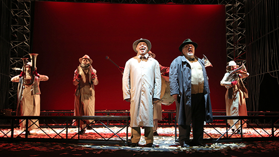 Театр имени Моссовета поставил пьесу о жизни пожилых людей. Хотя спектакль «Встречайте, мы уходим» будет интересен зрителям всех возрастов. Недаром один из героев философски замечает: «Молодость — это всего лишь прелюдия к старости». Сочинение Марии Ризнич посвящено французским старикам. Почему бы не поставить о наших? Ну, наверное, не живут они так стильно, как удается при всех их сложностях французам. И над соответствующим антуражем надо думать. А в Руане всё комильфо: ставь и радуйся. Что и делает постановочная команда в составе режиссера Сергея Аронина, художника Екатерины Ряховской, хореографа Рамуны Ходоркайте и художника по свету Олега Фонкаца. В качестве живого фона фланируют по сцене молодые люди в длиннополых плащах, летают шары, звонко хохочет прелестная девушка, поют Джо Дассен и Эдит Пиаф. Правда, в судьбоносные моменты вступают трагический Шнитке и меланхолическая Елена Камбурова, но печаль здесь преходяща. А Эйфелева башня вечна. К чему в финале возникают на заднике ее художественные проекции (вид фронтально, сбоку, изнутри), так и остается загадкой. Но выглядит красиво, в тон общему изяществу. Каждый день в парке встречаются двое хорошо одетых пожилых людей. У Мартина есть любящая дочь, мечтающая, чтобы неугомонный папа наконец успокоился и вернулся домой. Ланс — одинок, живет в служебной квартирке, из которой его вот-вот выселят. Посетители парка ведут споры «за жизнь», порой завершающиеся взаимными оскорблениями и рукоприкладством, но как только кому-то из них грозит опасность, забывают о разногласиях и спасают друг друга. Чтобы затем вновь пуститься в рискованные приключения. В общем, бедовые «старики-разбойники» — была, если кто не помнит, такая кинокомедия Эльдара Рязанова с участием Евгения Евстигнеева и Юрия Никулина. Замечательные актеры Виктор Сухоруков и Андрей Шарков давно мечтали сыграть вместе. Нашли было пьесу американского драматурга Херба Гарднера «Я не Раппопорт», но не заладилось: американцы потребовали, чтобы чернокожего героя играл афроамериканец. Тогда и возникло произведение Марии Ризнич. — Пьеса показалась близкой, понятной и очень нужной сегодня. Встреча уходящей старости с молодостью, — говорил Сухоруков накануне премьеры. — Пожилые люди бегут от цивилизации, скрываются от прогресса, прячутся в зарослях парка, сада, леса, джунглей — только для того, чтобы их не касались. Они не хотят быть обузой обществу, но оно всё равно цепляет их, достает и пытается сделать так, как решили молодые и здоровые… Однако есть в этой постановке нечто, мешающее воспринять ее как рассказ о старости и сопутствующих ей немногих радостях и многочисленных трудностях. Это нечто — народный артист Виктор Сухоруков, одним своим присутствием перекраивающий посыл «геронтологической» пьесы. Актеру исполнилось 65, играет он 70-летнего, но выглядит непозволительно молодо — свеж, подтянут, голос звонкий, по сцене не ходит — летает. Больше 55 (при ярком свете) ему не дашь, а в этом возрасте, согласитесь, самое время развернуться во всю мощь жизненных сил. Вот его Мартин и разворачивается. И не старик он, а артист, вдохновенно проживающий придуманные им самим роли. Шпион под прикрытием, адвокат, мафиози, звезда Голливуда… Есть у человека желание и возможность не ходить на работу, а вот так, красиво и свободно фантазиров
