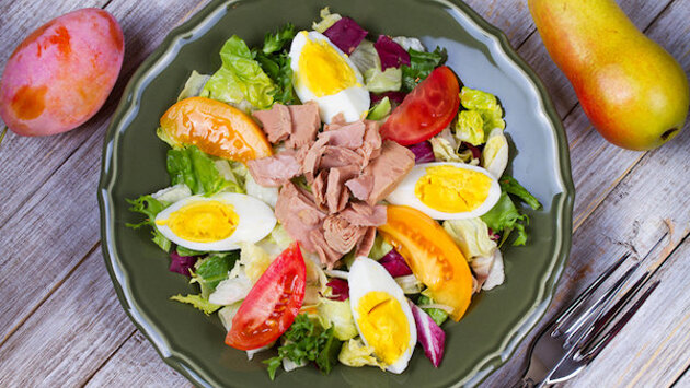 1. Корм для мышц: бутерброд с тунцом и сыром На 100 г тунца — 23,4 г белка (а в твоей любимой куриной грудке — всего 21,5 г). Что надо: Пита Сыр Помидор Что делать: 1. Надрежь питу, чтобы получился карман. 2. Загрузи в него одну банку тунца (не забудь слить всю воду) и пару-тройку ломтей мягкого сыра, например брынзы, молодого сулугуни или моцареллы, это тебе даст еще 7 г чистого белка. Туда же — 3-4 ломтика помидора. 3. Обжарь питу на сковородке без масла или на гриле, пока сыр не расплавится. Съешь немедленно — мышцы не ждут. [INTERESTING] 2. Пилюли для сердца: простые рыбные котлеты Витамины группы В из петрушки укрепляют сердечную мышцу и повышают уровень «хорошего» холестерина. Что надо: Яйцо Панировочные сухари Петрушка Что делать: 1. Взбей в миске одно яйцо, добавь банку тунца, по 1 большой горсти сухарей и мелко порезанной петрушки. 2. Всю это красоту как следует перемешай и налепи котлет. Жарь по 1 минуте с каждой стороны. 3. Отличный обед с 40 г чистого белка. С пивом, кстати, тоже хорошо пойдет. 3. Борьба с животом: тунцово-йогуртовый паштет Полезные бактерии в йогурте улучшают пищеварение и вывод лишней жидкости из организма, что способствует проявлению твоих кубиков. Что надо: Натуральный свежий йогурт Изюм Порошок карри Что делать: 1. Смешай банку тунца с парой столовых ложек йогурта, горстью изюма и щепоткой карри. 2. Можешь добавить столовую ложку острого индийского чатни, например из манго. 3. Получится отличная паста, которую ты можешь мазать на крекеры или тосты. [INTERESTING] 4. Витаминизация: низкогликемический салат Клетчатка в фасоли и кислота в уксусе — эта прекрасная компания гарантирует отличное пищеварение. Усвоится все остальное, что есть в этом салате. Что надо: Банка консервированной фасоли Зеленый лук Помидоры черри Белый винный уксус Что делать: 1. Открой банки с фасолью и тунцом — это самое сложное, что тебе придется сделать, готовя этот салат. 2. Смешай содержимое банок в миске, добавь горсть мелко порезанных помидоров и 5-6 перьев лука — тоже порубленных помельче. 3. Сбрызни уксусом и еще раз перемешай. [NEXT_PAGE]Обед марафонца[/NEXT_PAGE] 5. Обед марафонца: салат нисуаз Антиоксиданты из этого салата увеличивают содержание кислорода в крови, что повышает выносливость. А еще это сытно и вкусно. Что надо: Картофель Яйцо Стручковая фасоль Помидоры черри Что делать: 1. Свари горсть фасоли, пару картофелин и яйцо — так, чтоб уже не всмятку, но еще не вкрутую. 2. Смешай овощи с тунцом, сверху выложи четвертинки яйца, плесни оливкового масла. 3. Съешь. Поздравляем — ты только что умял половину дневной нормы витамина С. [INTERESTING] 6. Съедобная машина времени: псевдогреческий салат Оливки богаты олеиновой кислотой, которая разглаживает морщины. Хватит кремом мазаться — лучше поешь. Что надо: Красный лук Оливки Сыр фета или брынза Что делать: 1. Нашинкуй половину луковицы и горсть оливок. 2. Смешай с банкой тунца и парой раскрошенных ломтей сыра. Приправь оливковым маслом. 3. Можешь добавить помидоры черри — а остальные овощи зимой все равно несъедобны. [INTERESTING] 7. Мощное утро: омлет со шпинатом Даже если ты проспал, у тебя будет время приготовить на завтрак этот скоростной омлет. Съешь его — и получишь 48 г чистого белка. Что надо: 2 яйца Шпинат Болгарский перец Что делать: 1. Взбей в миске яйца. Добавь к ним банку тунца, крупно порванные листья шпината (или один кубик шпината из паке