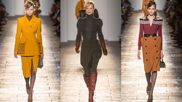 Из сезона в сезон включать на перемотку одно и то же любимое десятилетие, при этом умудряясь каждый раз переиграть сотни раз виденное по-новому - особый среды прочих дизайнерских талантов. Так, у Джорджио Армани на подиуме вечные 80-е, у Вероники Этро - 70-е, а у Томаса Майера в Bottega Veneta - 40-е. И даже после взятия брендом в прошлом году полувекового рубежа, курсу на военное ретро он не изменяет. Сверхзадача дизайнера - в каждой коллекции делать акцент на ключевой ценности бренда. Майер формулирует ее как "элегантная роскоши, которую вы обретаете с любой из вещей - будь то пара обуви или украшение, - которые выходят под маркой Bottega Veneta". Поэтому для него в приоритете простота кроя. Но эффект внешней простоты и чистоты точеного скульптурного, во многом баленсиаговского, силуэта - исключительно визуальный. В конце концов, чтобы добиться такого и довести его до совершенства, понадобились те самые 50 лет. Все внимание в новой коллекции, по традиции, - на строгий костюм из жакета и юбки, отсылающий к опустившейся на плечи женщины в военные годы униформе. Отсюда - скульптурный литой силуэт с утрированно широкими вздернутыми плечами, подчеркнутая талия, прикрытое колено, мелкая клетка, длинноворсовый мех, приглушенная меланхоличняа палитра, укладки валиком и очаровательная капроновая мушка.
